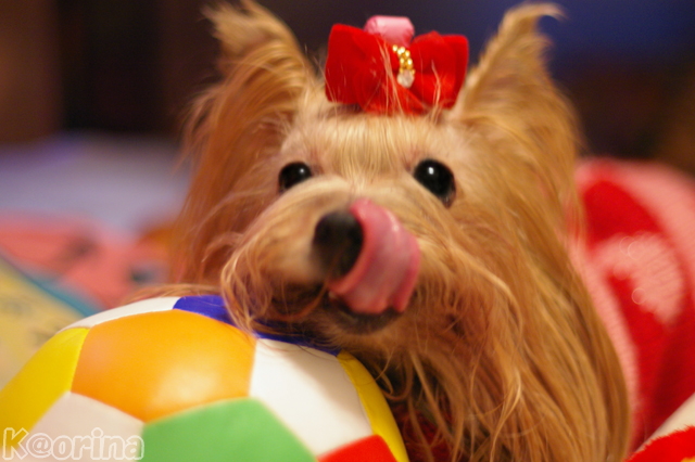 大っきな相手でも果敢に挑んで、りなちゃんの【舌なめずり】は、“超”ご機嫌な時に出るのです。