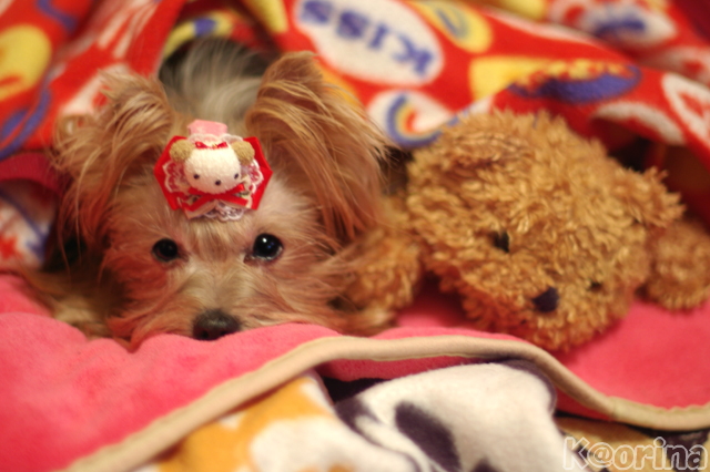 冷え性の私も・・・クマちゃんと一緒に、ヌクヌクしたいのですけど、りなちゃんは、自分の物を、