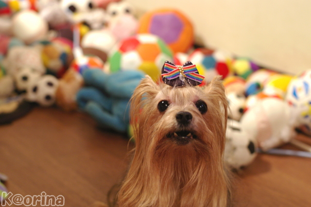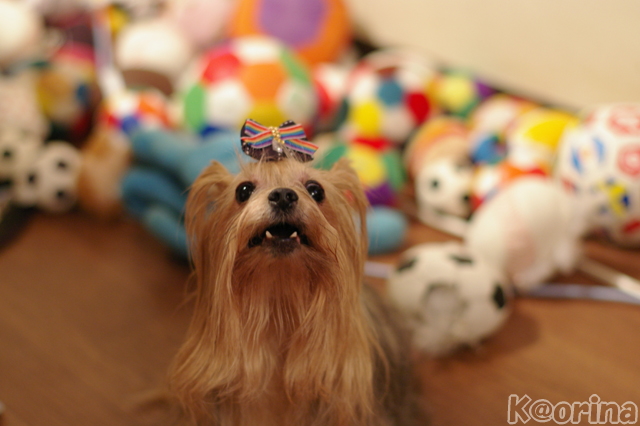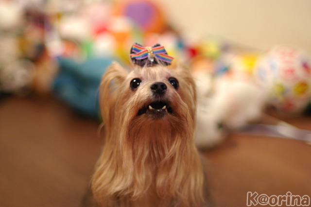 この↑写真は、絞り開放で撮ってみました。背景のオモチャがボワ~ン♪としていますね。