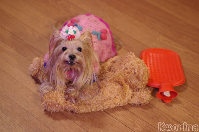 くまさんのカバーの付いた、小さな『湯たんぽ』を発見して・・・大興奮~!!!