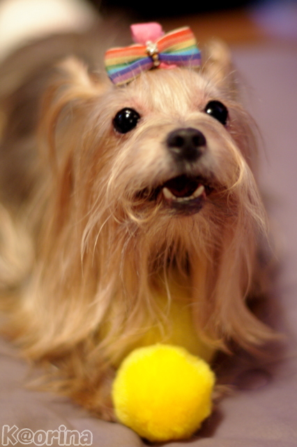 黄色いボールちゃんは、りなちゃんの宝物。りなちゃんは、私の宝物。(照)