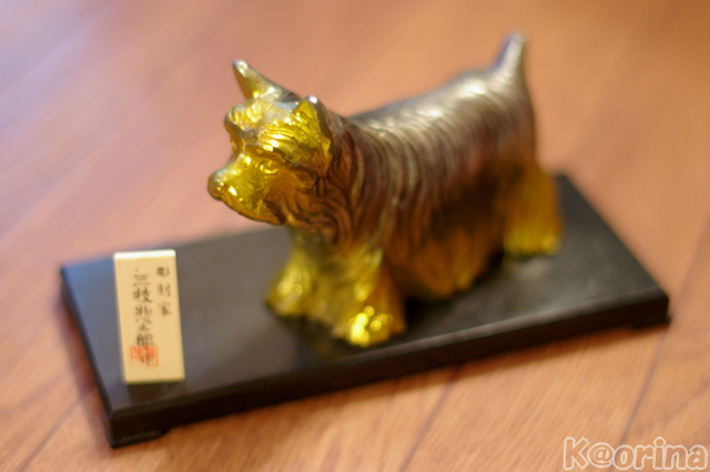 そして・・・もう一枚。金色と銀色に輝く、こちら↓の写真は、ヨーキーちゃんの彫刻で~す♬