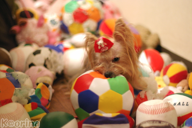 この↑大きなボールちゃんでありました~♥豪快にカプッと齧り付いてくだちゃっております。