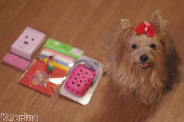 りなちゃんの物は、可愛い缶入りのオヤツとラッピングペーパー&ゴムです。