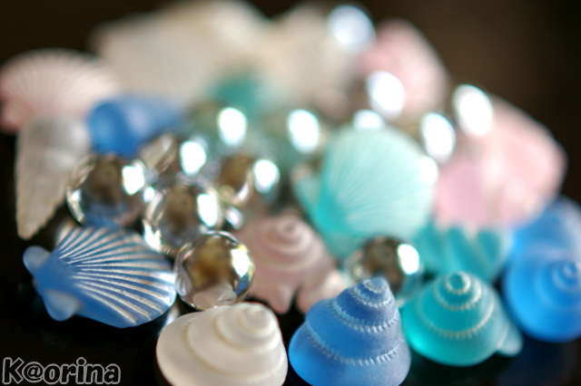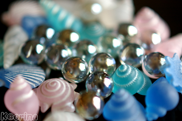 今日は、ビー玉の他に・・・貝殻の小物類も加えてみちゃいました♫