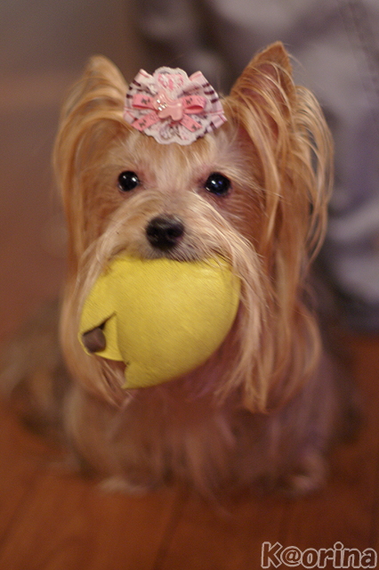 新しいボールを貰って、「一緒に遊ぶでちゅよ~!」っと嬉しそうに待機してます。