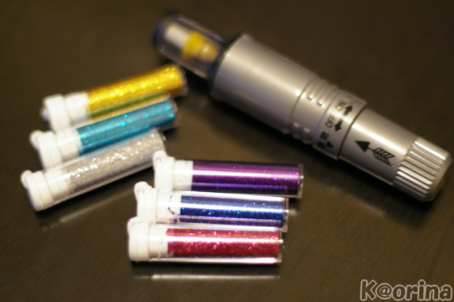 電動ネイルスムーサーを使うと早く削れて便利です。ラメも、実は、100均で買えちゃいます。(笑)